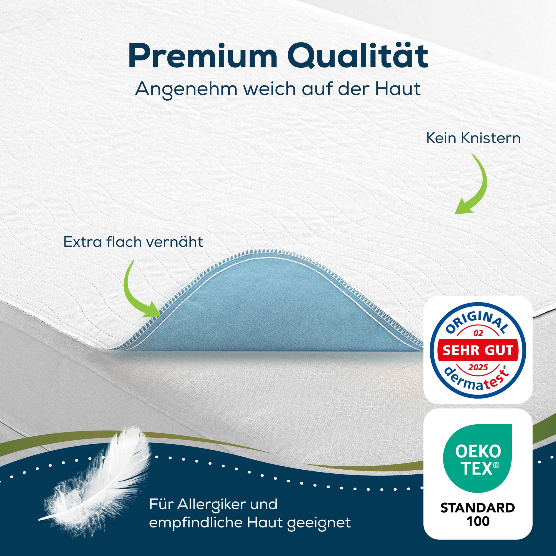 En tant que produit certifié Oeko-Tex, la protection contre l'incontinence répond à des normes environnementales et sanitaires strictes. Il est exempt de substances nocives et offre une utilisation sûre pour tous les utilisateurs.