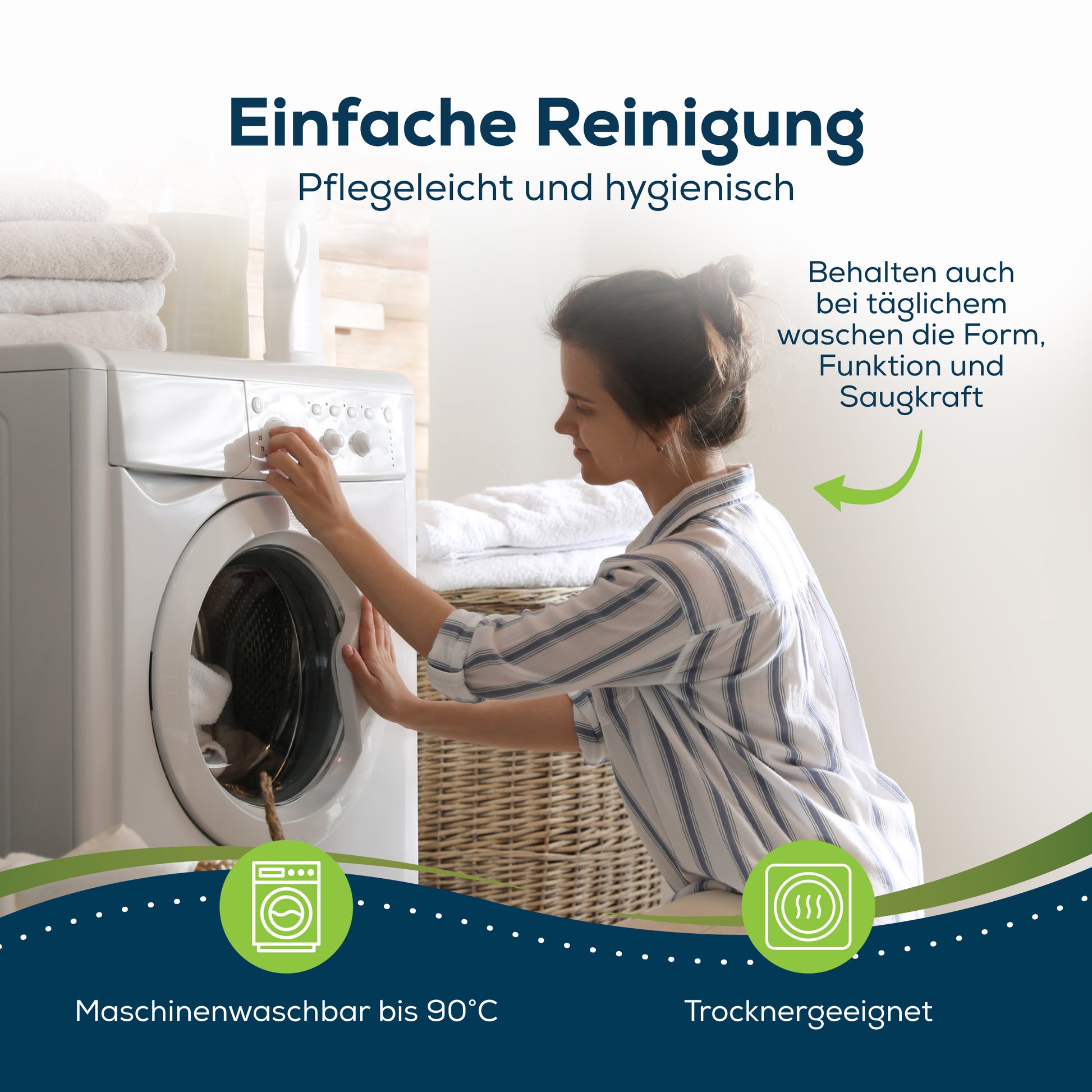 Grâce à sa compatibilité avec le sèche-linge, le tampon est rapidement prêt à être réutilisé après le nettoyage. Cela les rend extrêmement pratiques et conviviaux dans l’utilisation quotidienne.